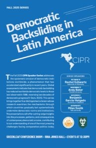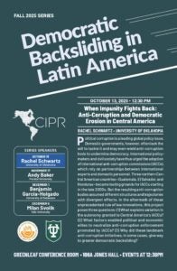 The Fall 2025 CIPR Speaker Series addresses the systematic erosion of democratic institutions worldwide, a phenomenon that has accelerated significantly in recent years. Global assessments indicate that democratic backsliding has reduced worldwide democratic levels to those last observed in 1996, reversing two decades of democratic progress (V-Dem, 2025). This series brings together four distinguished scholars […]